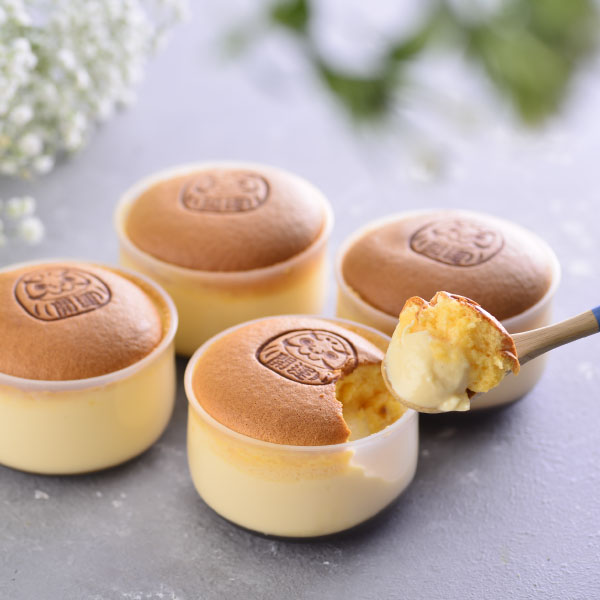 久久津NO.1網路人氣商品金黃色澤の新鮮手工布丁燒融入北海道「LUXE道南乳酪」自然醇厚風味,一口布丁、一口燒蛋糕滑順入口,給您甜而不膩的滋味。